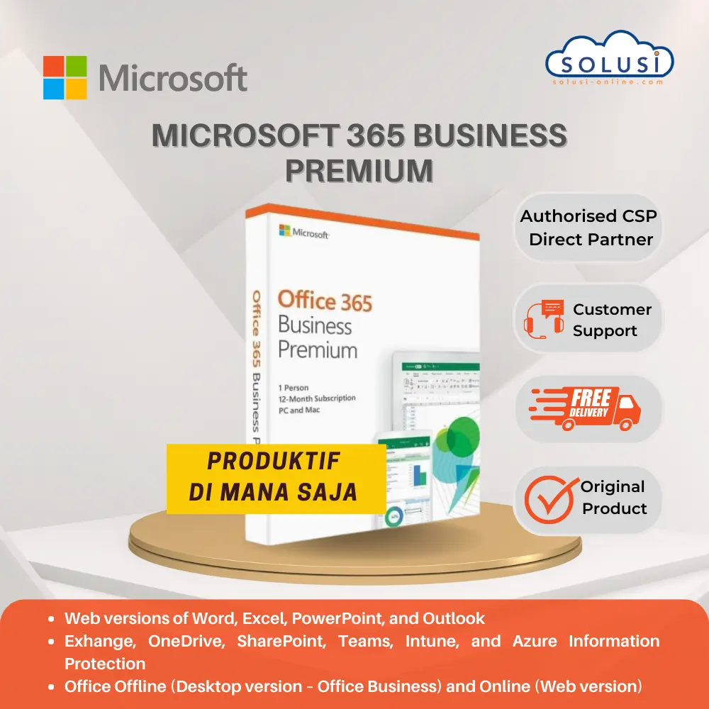 Anda dapat menginstal Microsoft 365 Apps for Business di beberapa perangkat, termasuk PC, Mac, tablet Android, ponsel Android, iPad, dan iPhone. Selain itu, di Microsoft 365 Business Premium Anda mendapatkan layanan seperti penyimpanan online dengan OneDrive dan menit Skype untuk penggunaan di rumah. Saat Anda memiliki langganan Microsoft 365 Business Premium aktif, Anda selalu memiliki versi aplikasi Office yang paling baru.